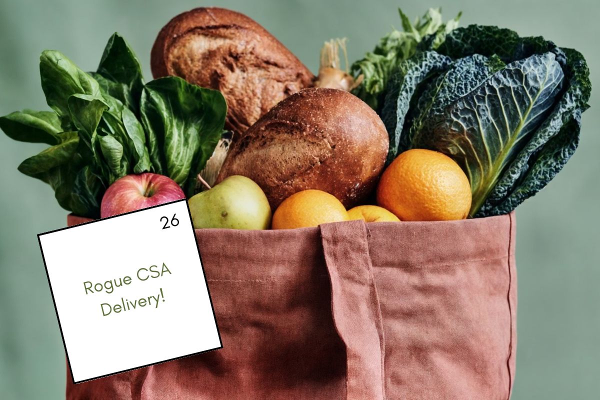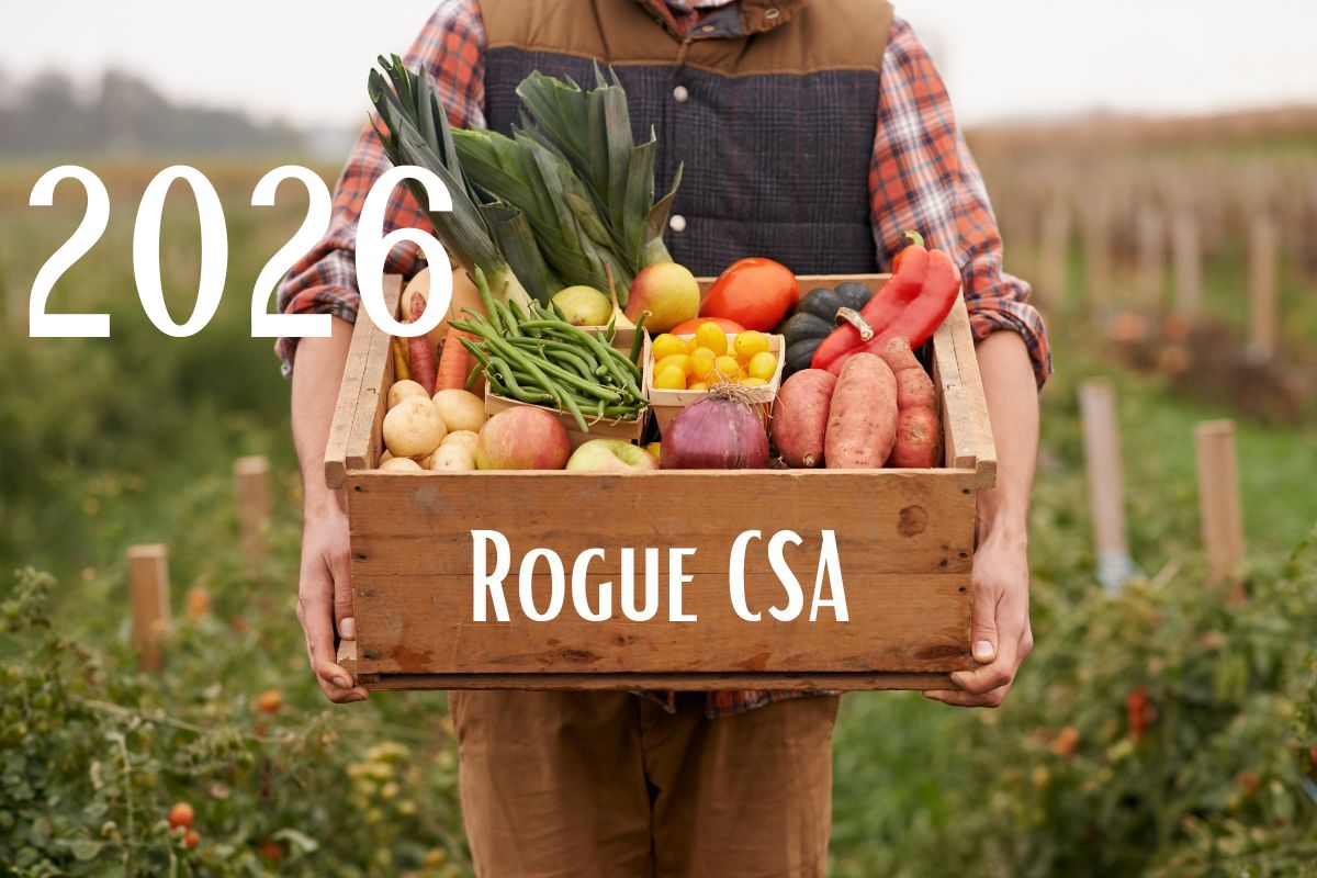 Get signed up today to receive your Rogue CSA Shares starting June 26, 2026. In the meantime, you can place custom orders for home delivery through our Online Farmers Market – delivering every other week, year round!